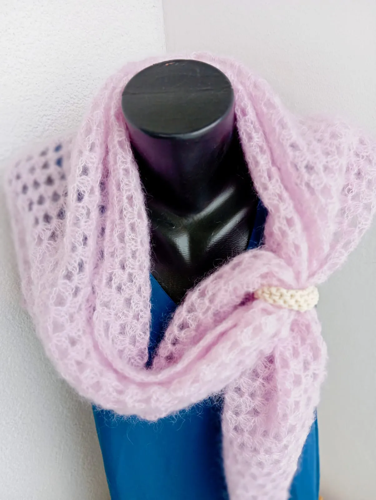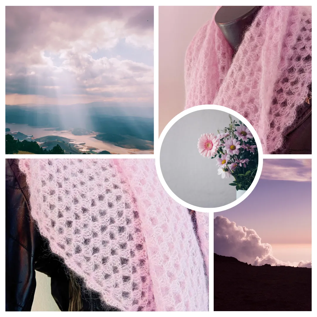Ručně háčkovaný šátek z prémiové alpaky a hedvábí.